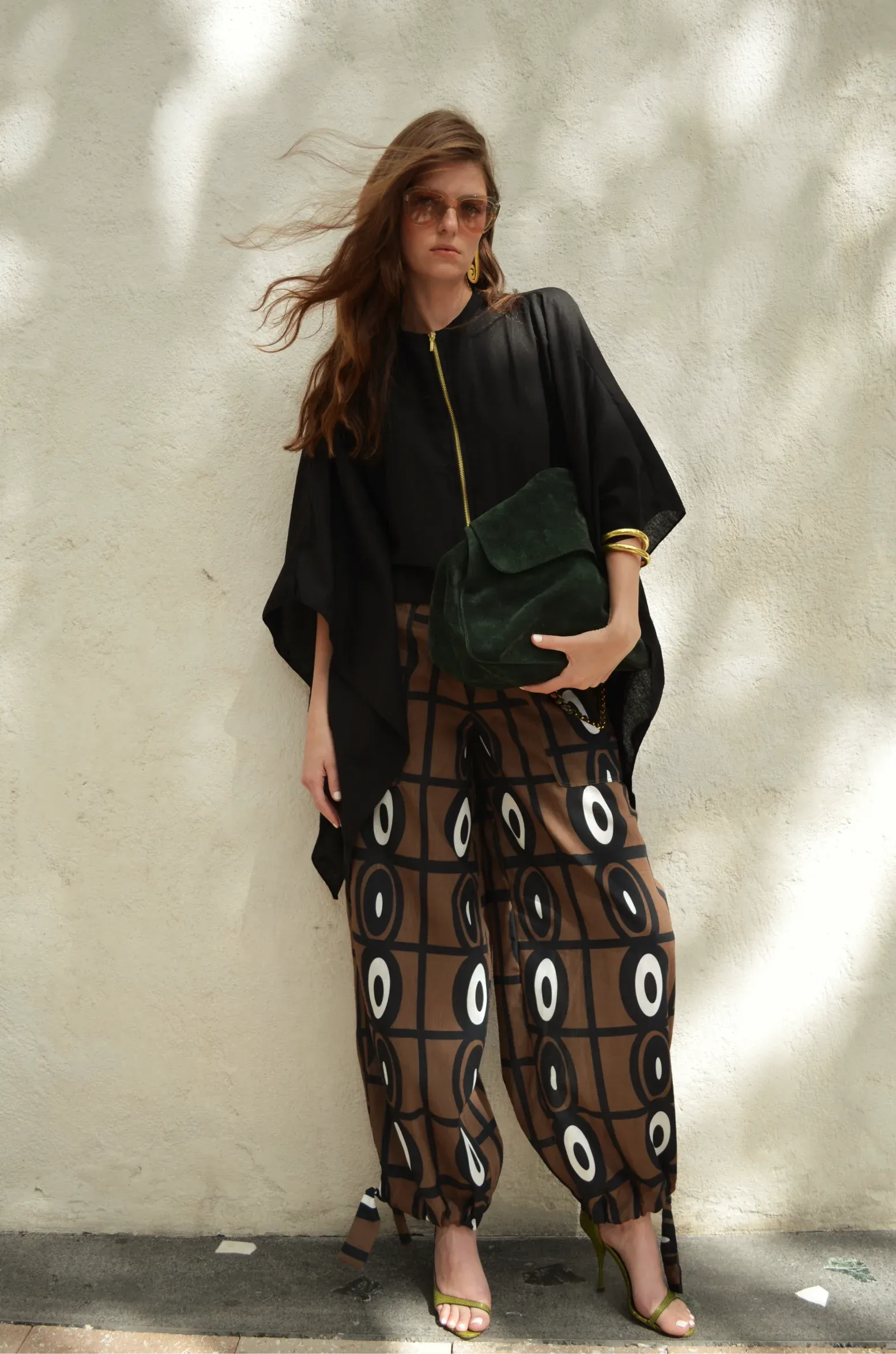 Pantalón de corte clásico, confeccionado en un tejido estampado con bota ajustable que permite un look versátil y personalizado.