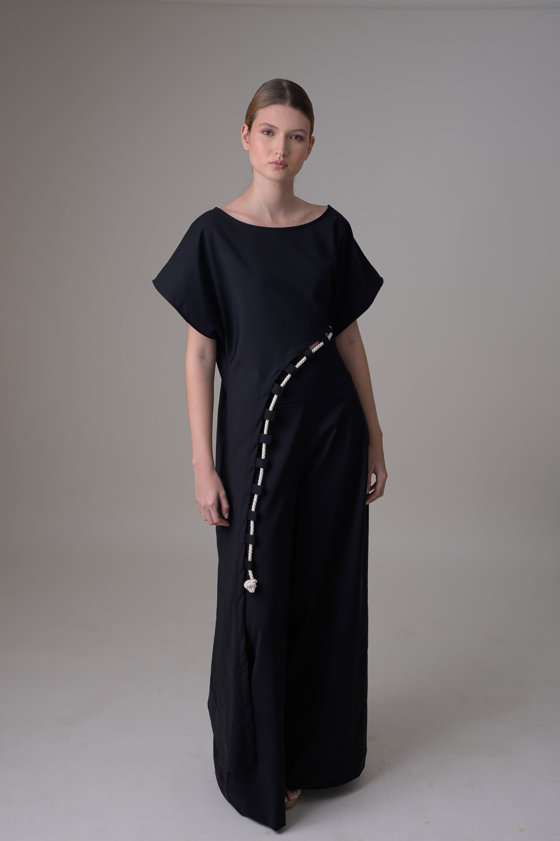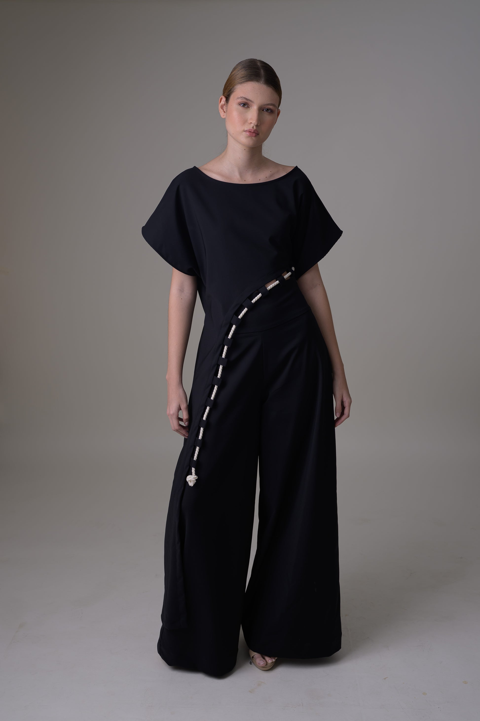 El Pantalón Calín destaca por su pretina alta y su bota amplia, creando una figura alargada y elegante. Su caída impecable ofrece movimiento y comodidad, mientras que su diseño minimalista lo convierte en un básico elevado
