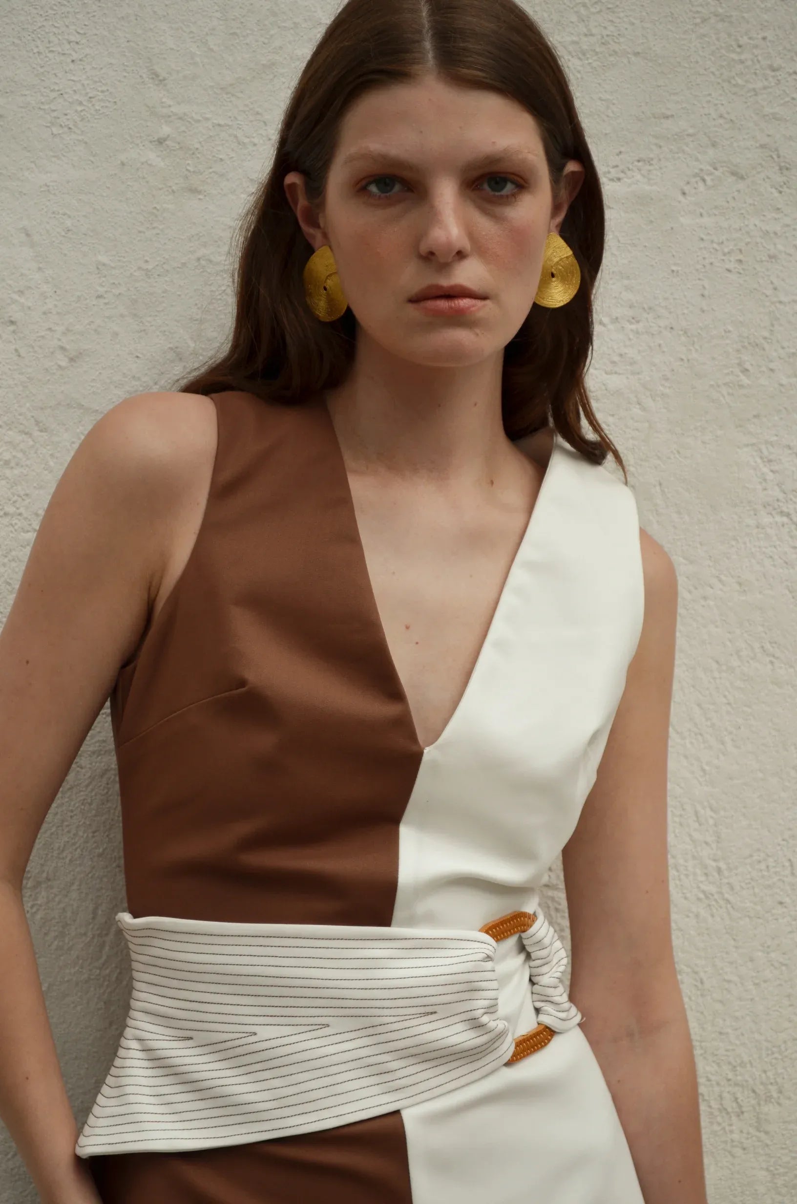 VESTIDO TRICOLOR CON DETALLE DE FAJON PESPUNTADO QUE DESTACA LA SILUETA FEMENINA, APORTANDO SOFISTICACIÓN Y VERSATILIDAD.