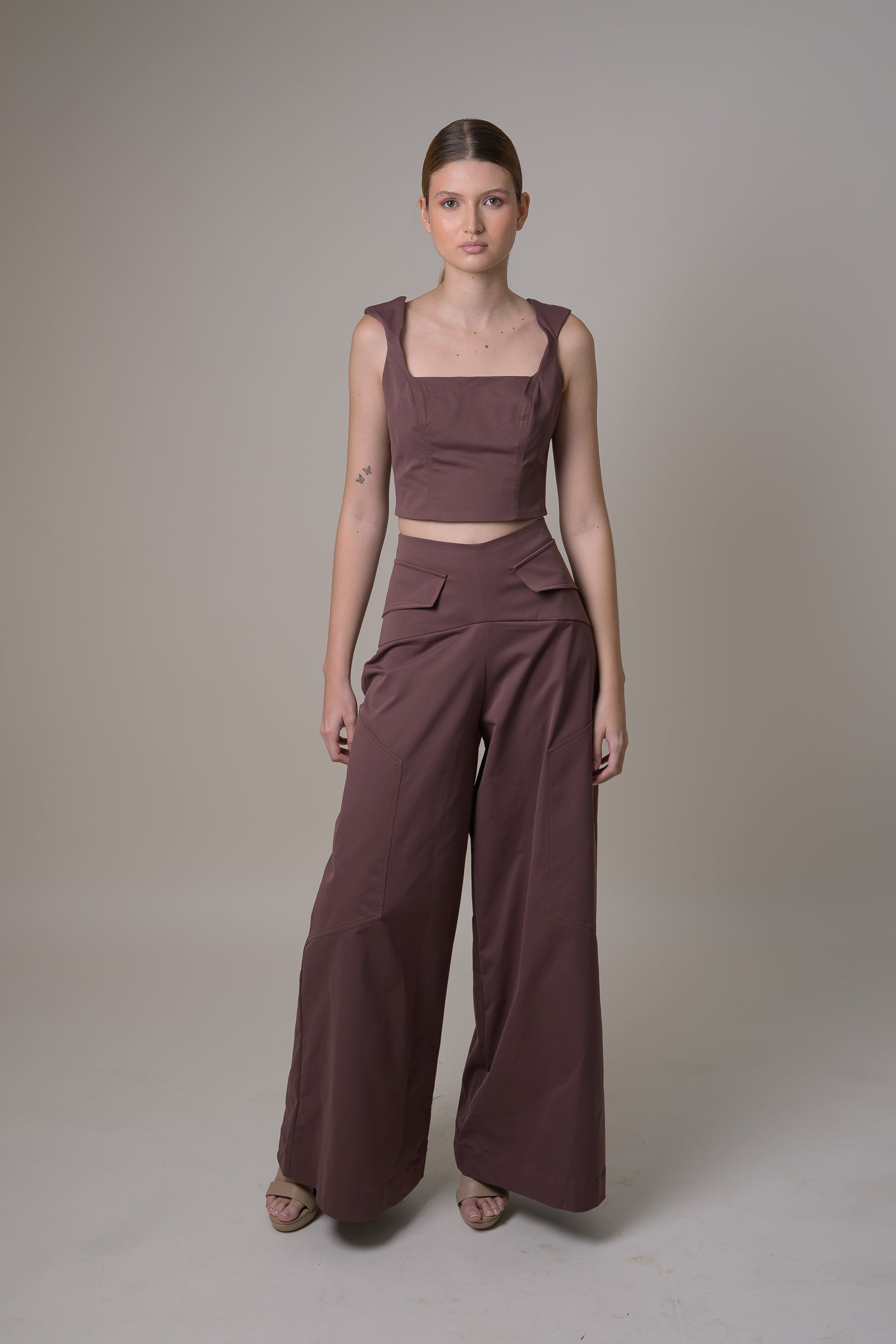 El Top Dalena presenta un escote cuadrado estructurado que resalta la línea del cuello y los hombros. Sus pespuntes marcados aportan definición y refinamiento, creando una silueta moderna y elegante.